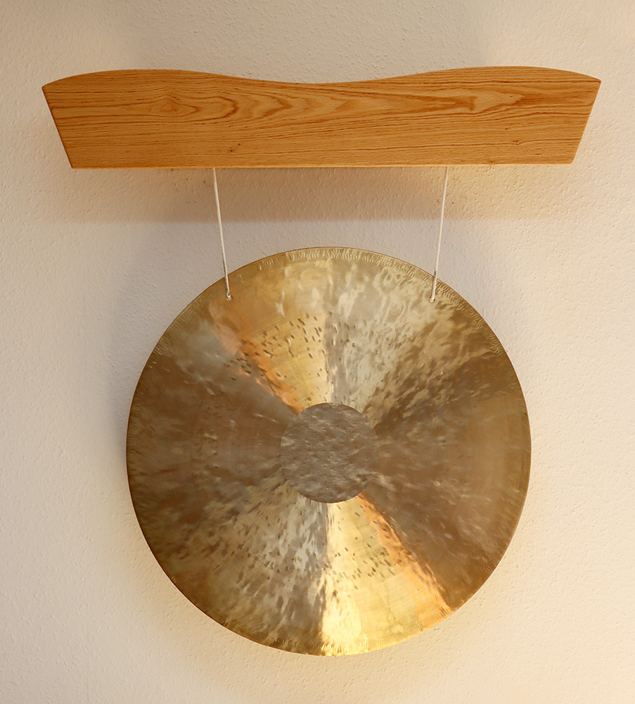 Fenggong: Goldfarbene Bronzelegierung mit flachem Rand, Klang mit breitem Frequenzbereich, schlägt man ihn nur sanft an, klingt er tief und voll, stärker angeschlagen entstehen fast dramatische Klangeffekte - ähnlich wie bei einem Becken. Alle Gongs incl. Gongschlägel