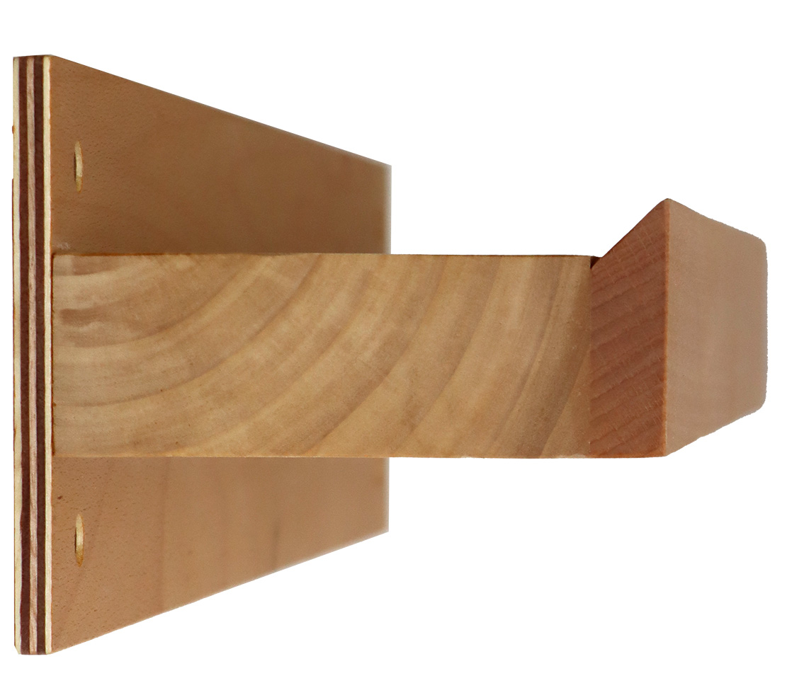 Das schön geschwungene Kopfbrett wird dann einfach nur auf die Wandhalterung aufgesetzt und bildet den optisch harmonischen Rahmen für den Gong.