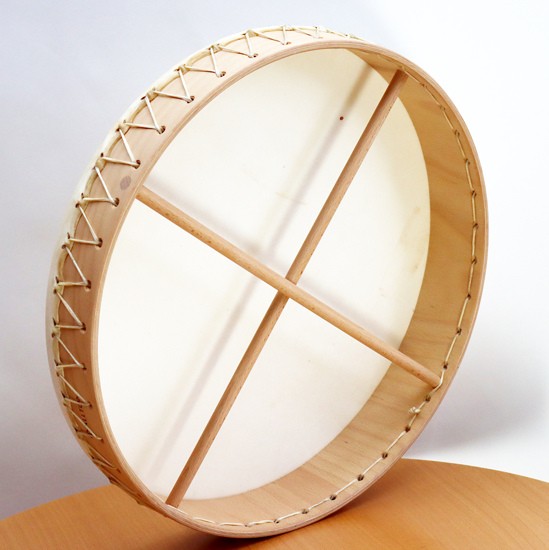 ALLTON Ringtrommeln. Diese beliebten Schamanentrommeln sind mit ungegerbten Lederschnüren bespannt. Die Trommeln werden individuell in Handarbeit gefertigt. Es werden nur Naturmaterialien (verleimter Buchenholz-Korpus, Fellstreifen-Bespannung mit Naturfell) von bester Qualität verwendet. Die Ziegenfelltrommel ist wegen ihres sonoren Klangs als Schamanentrommel besonders beliebt.