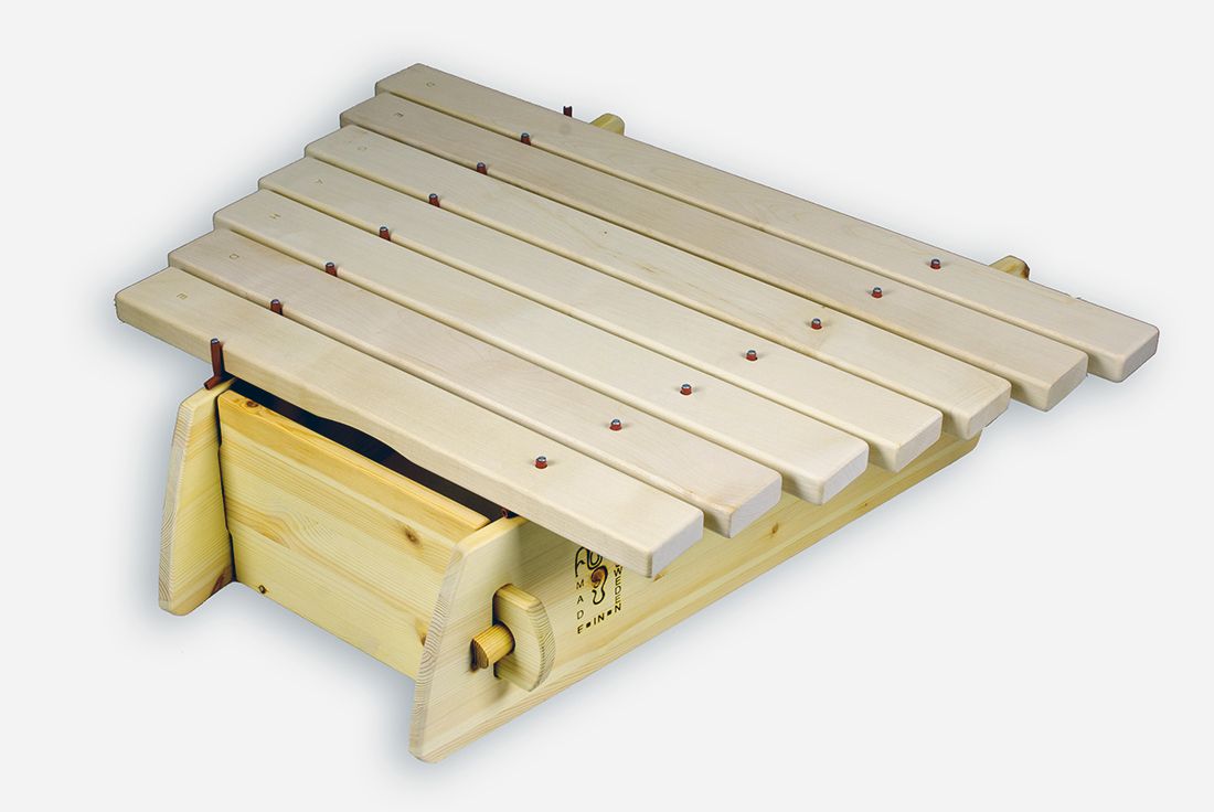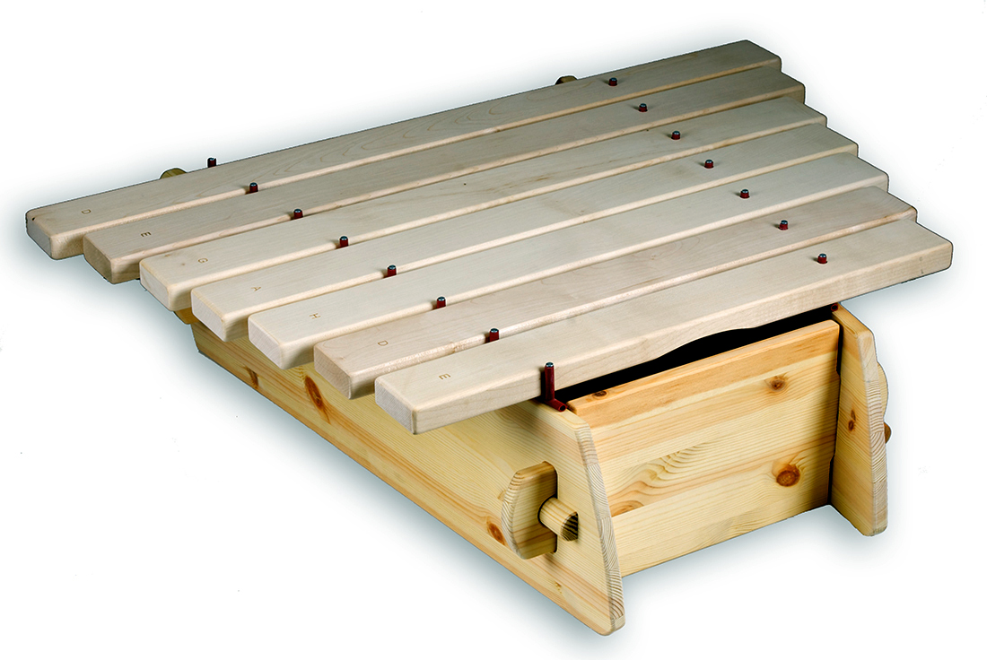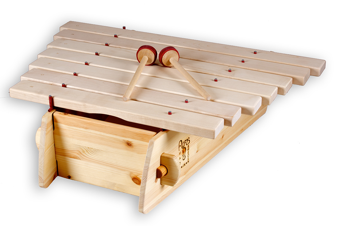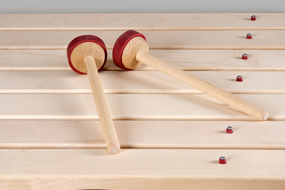 Großes Xylophonspiel mit Steckrahmen aus Kiefernholz. Die Klangstäbe sind aus europäischem Ahorn gefertigt. Durch die Größe der Klangstäbe entstehen besonders bassige Töne - schön auch für das Spiel zu zweit. D-Pentatonik, inkl. 1 Paar Gummischlägel