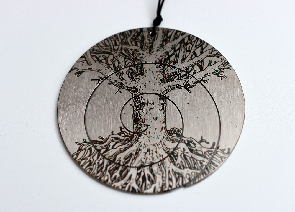 EarGong - Ohrgong, 8,3 cm, Edelstahl mit Gravour, Baum
