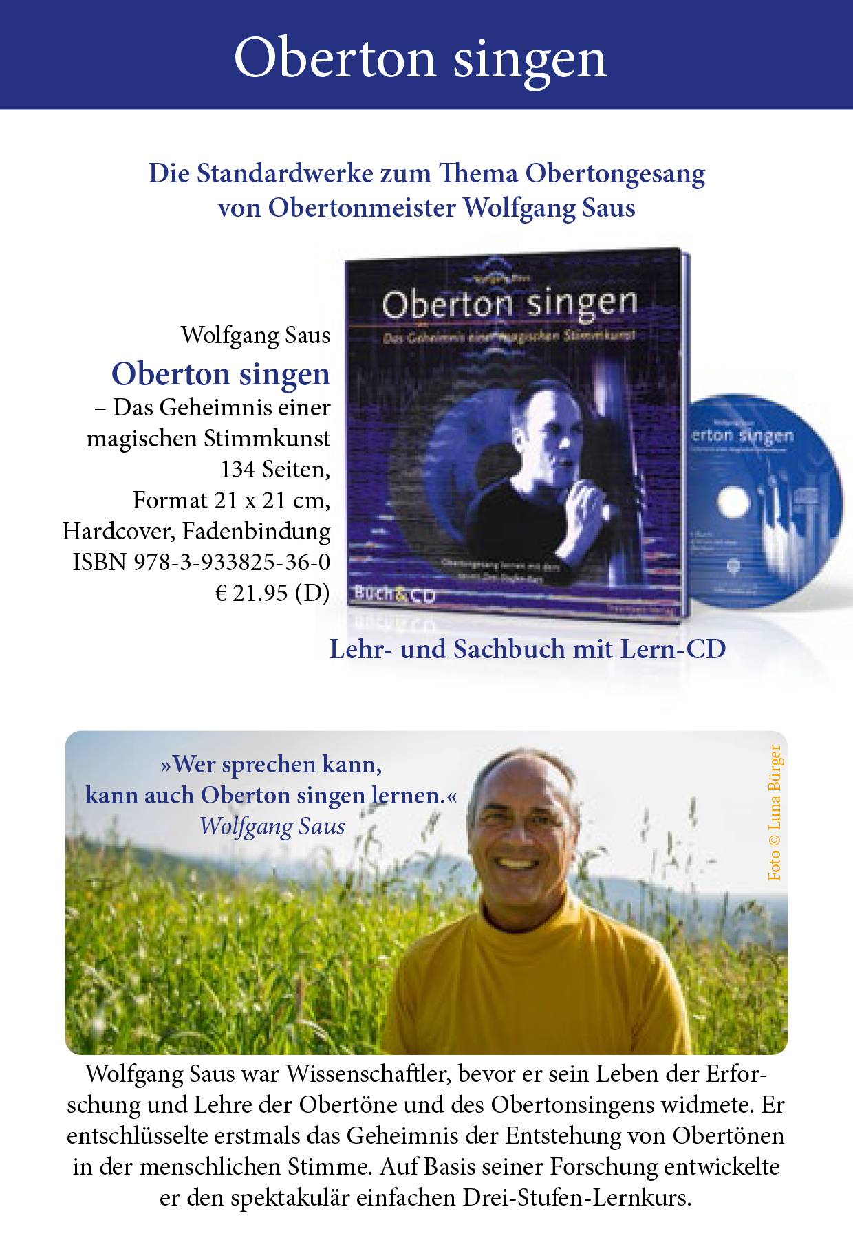 Produktinformationen "Fachbuch mit CD: Wolfgang Saus: Oberton-Singen - Das Geheimnis einer magischen Stimmkunst - Obertong"