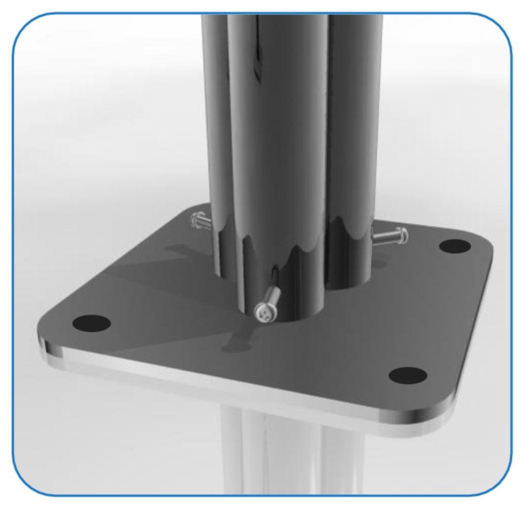 Edelstahlgestell mit Bodenplatte zum Anschrauben.
