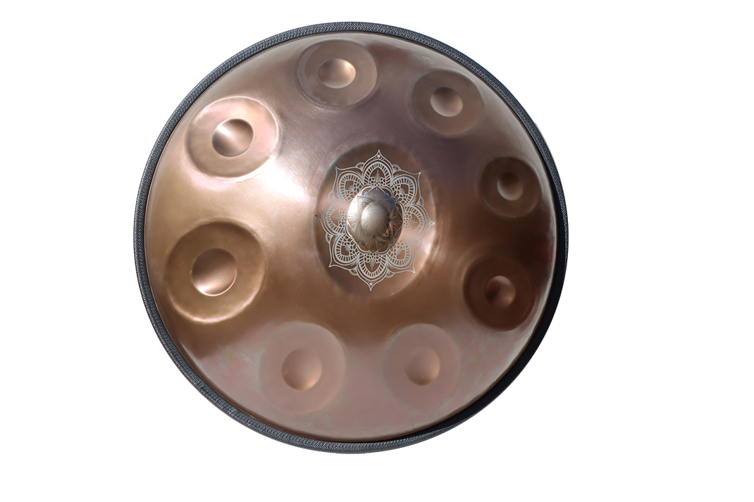 Handpan, Edelstahl, D- celtic Minor, 432 Hz, Bronze-farben mit Gravour,