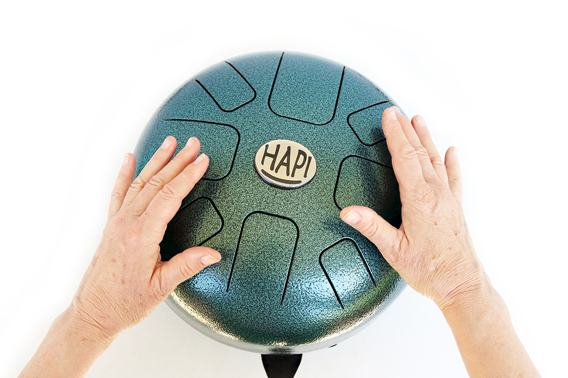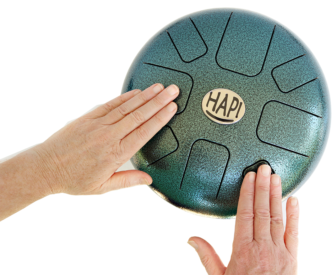Die HAPI-Drum ist eine spezielle Steeldrum: eine Art Metall-Schlitz- oder Zungentrommel, die sowohl mit Händen als auch mit Schlägeln bespielt werden kann. Wunderbar weiche, glockige und meditative Klänge können auch mit nur wenig Übung diesen Instrumenten entlockt werden. Alle Instrumente sind pentatonisch gestimmt.