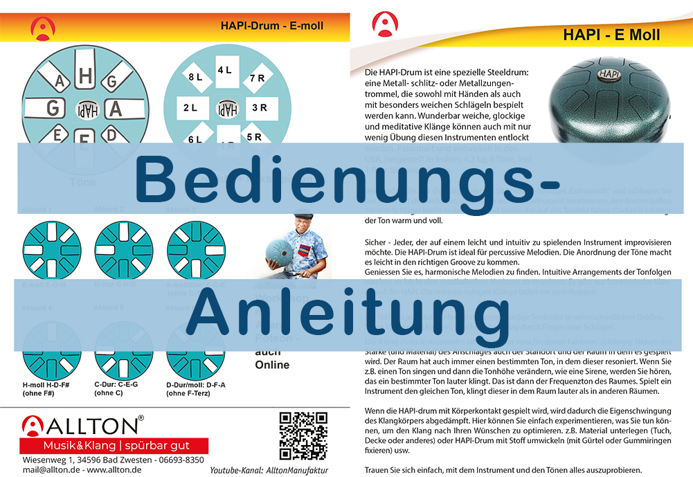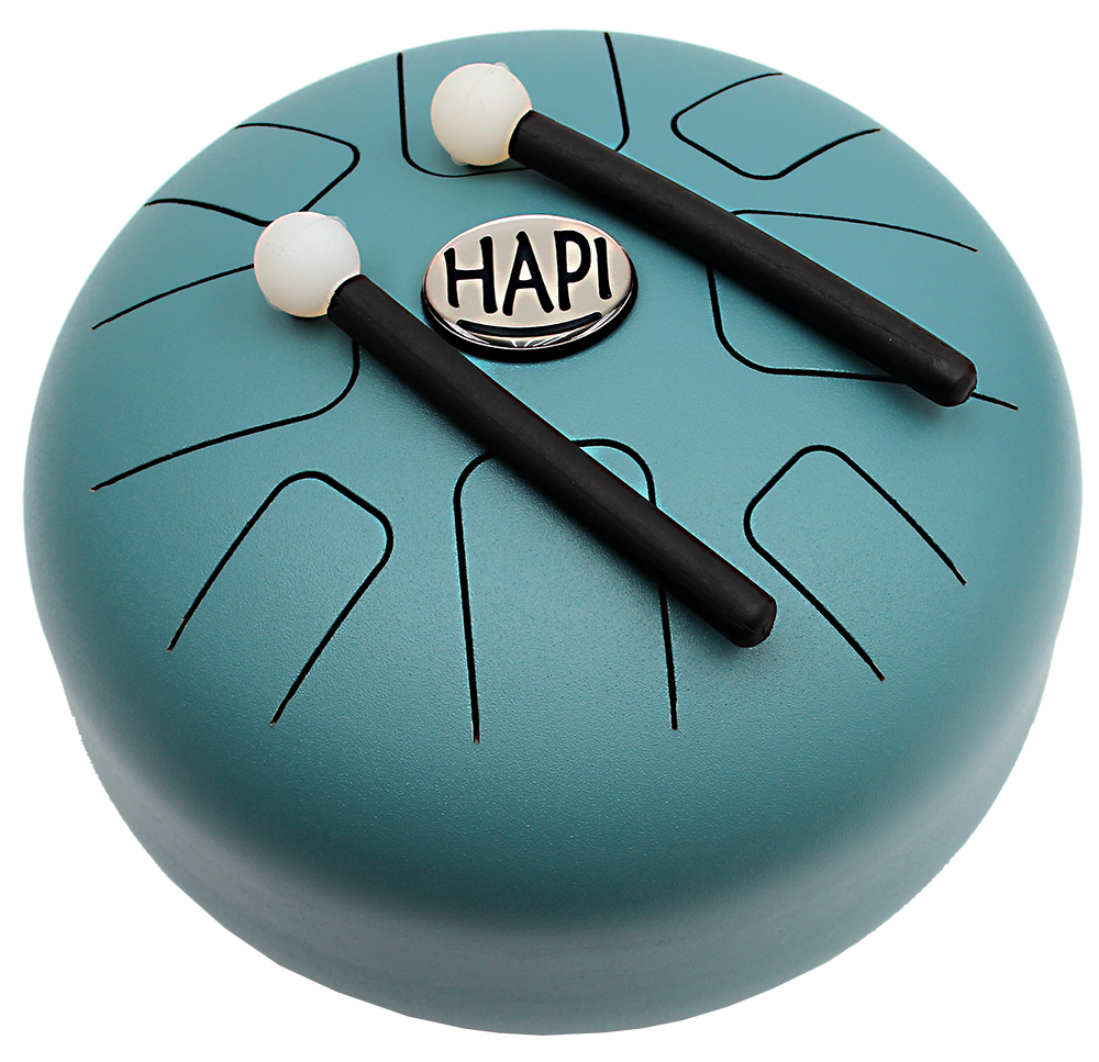 Die HAPI-Drum ist eine spezielle Steeldrum: eine Art Metall-Schlitz- oder Zungentrommel, die sowohl mit Händen als auch mit Schlägeln bespielt werden kann. Wunderbar weiche, glockige und meditative Klänge können auch mit nur wenig Übung diesen Instrumenten entlockt werden.