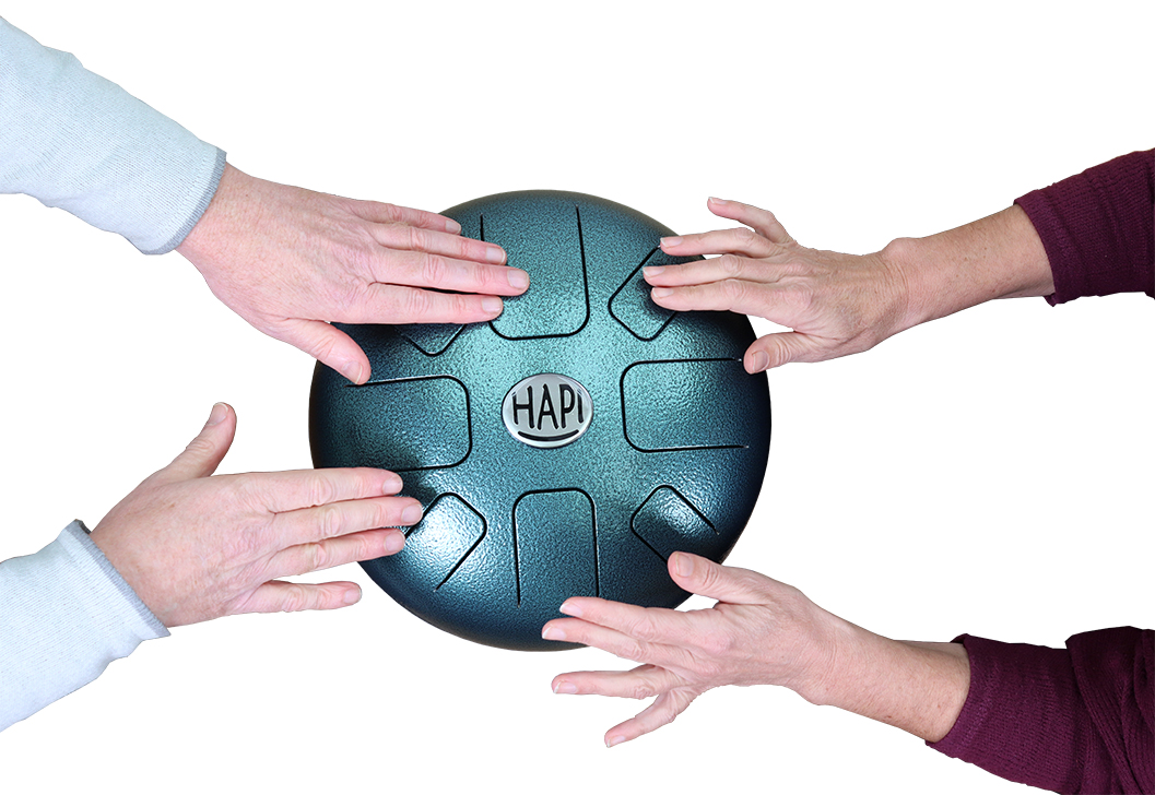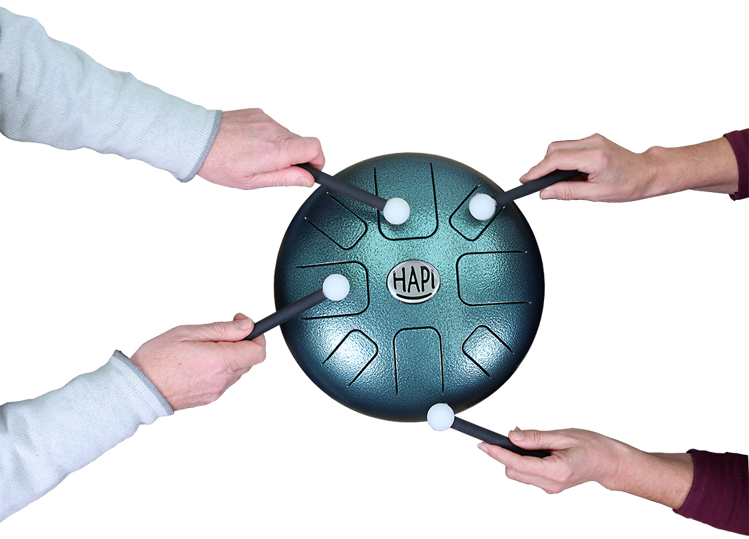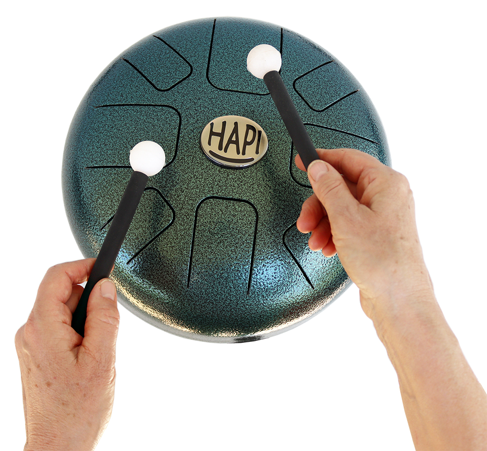 Die HAPI-Drum ist eine spezielle Steeldrum: eine Art Metall-Schlitz- oder Zungentrommel, die sowohl mit Händen als auch mit Schlägeln bespielt werden kann. Wunderbar weiche, glockige und meditative Klänge können auch mit nur wenig Übung diesen Instrumenten entlockt werden.