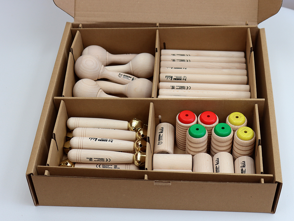speziell für die musikalische Früherziehung und ideal für die Kinderkrippe ist dieses Set mit 41 Instrumenten. Das Set ist GS-geprüft für Kinder ab 1 Jahr. Das Orff-Set Junior 1+ wird in einem Karton geliefert. Das Instrumenten-Set besteht aus: 3 Junior Shaker lp, 3 Junior Shaker hp, 6 Scrapy Shaker bunt, 12 Glockenstäbe, 12 Paar Junior Claves 16, 5 Mini Maracas Holz. Hergestellt von Rohema in Deutschland.