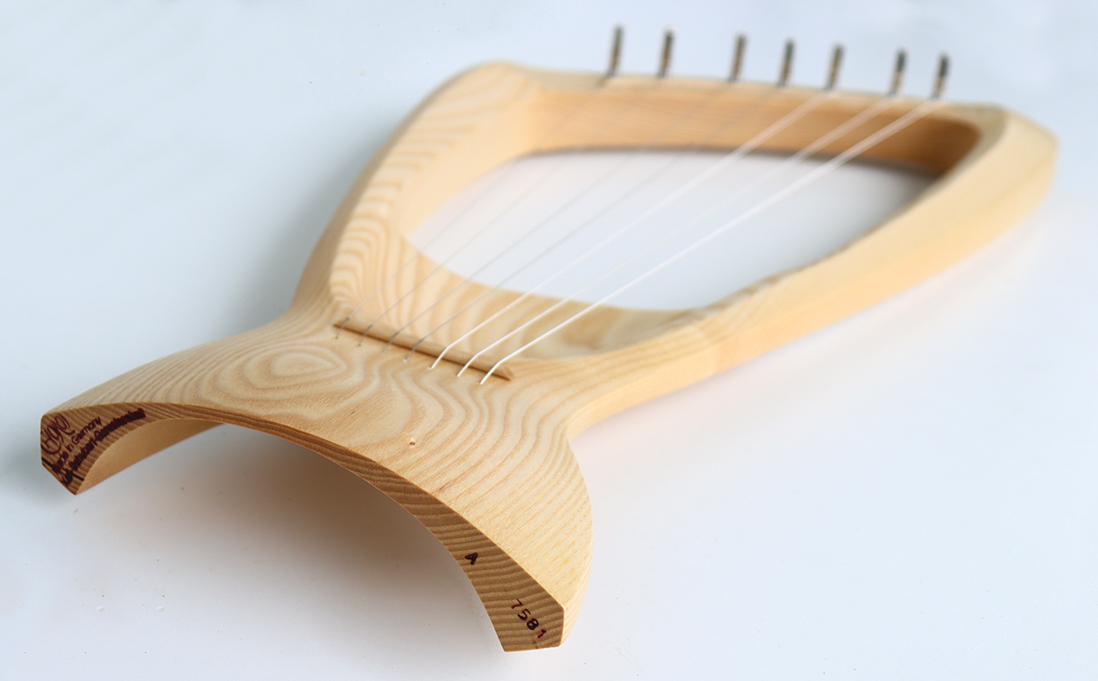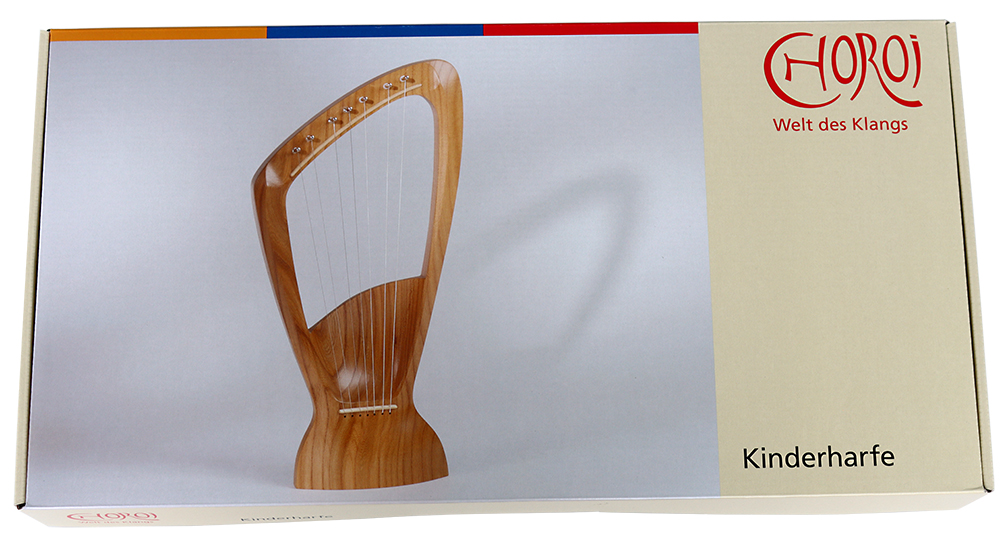 Die Choroi Kinderharfe ist besonders leicht und formschön, ein pentatonisch gestimmtes Instrument, das mit seinem zarten, offenen Ton das kleine Kind zum Lauschen und freien Musizieren anregt. Ab dem sechsten oder siebten Lebensjahr kann die Harfe dem Kind als erstes Saiteninstrument in die Hand gegeben werden. Die Kinderharfe ist aus einem Stück Klangholz (Ahorn oder Esche, je nach Verfügbarkeit) gearbeitet, auf einen geschlossenen Resonanzraum wurde bewusst verzichtet. Beim Halten des Instruments sind die Töne sehr schön übers Holz spürbar. Stimmung: 7 Stahlsaiten in einer Reihe, Tonfolge d'-e'g'-a'-h'-a''-e''. In dieser Reihe verbirgt sich die Quintenreihe g-d-a-e-h (sogenannte Quintenstimmung), mit denen pentatonische Melodien gespielt werden können. Diese Tonfolge ist in besonderer Weise dazu geeignet das freie musikalische Spielen zu erüben.