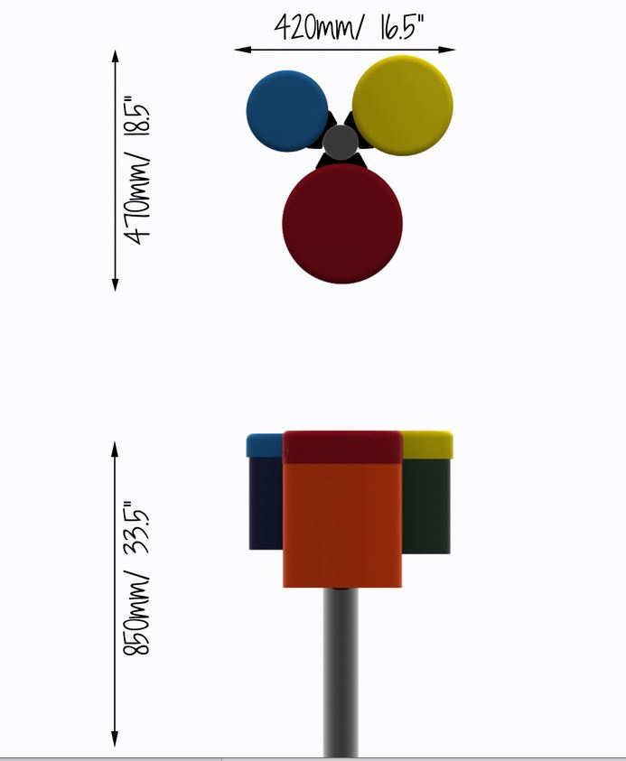 Outdoor Bongo, 3 farbige Bongos mit Edelstahl-Pfosten, zum einbetonieren