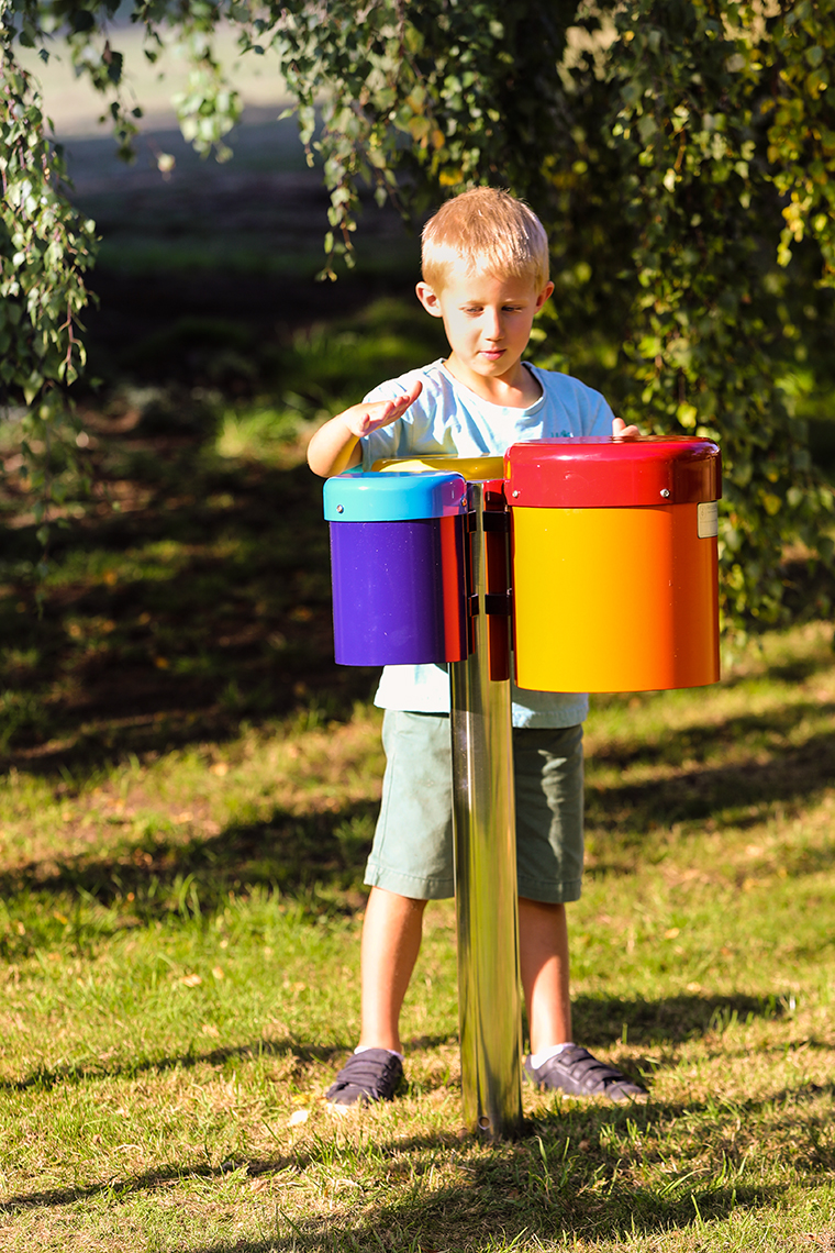 Produktinformationen "Outdoor Bongo, 3 farbige Bongos mit Edelstahl-Pfosten, zum einbetonieren"