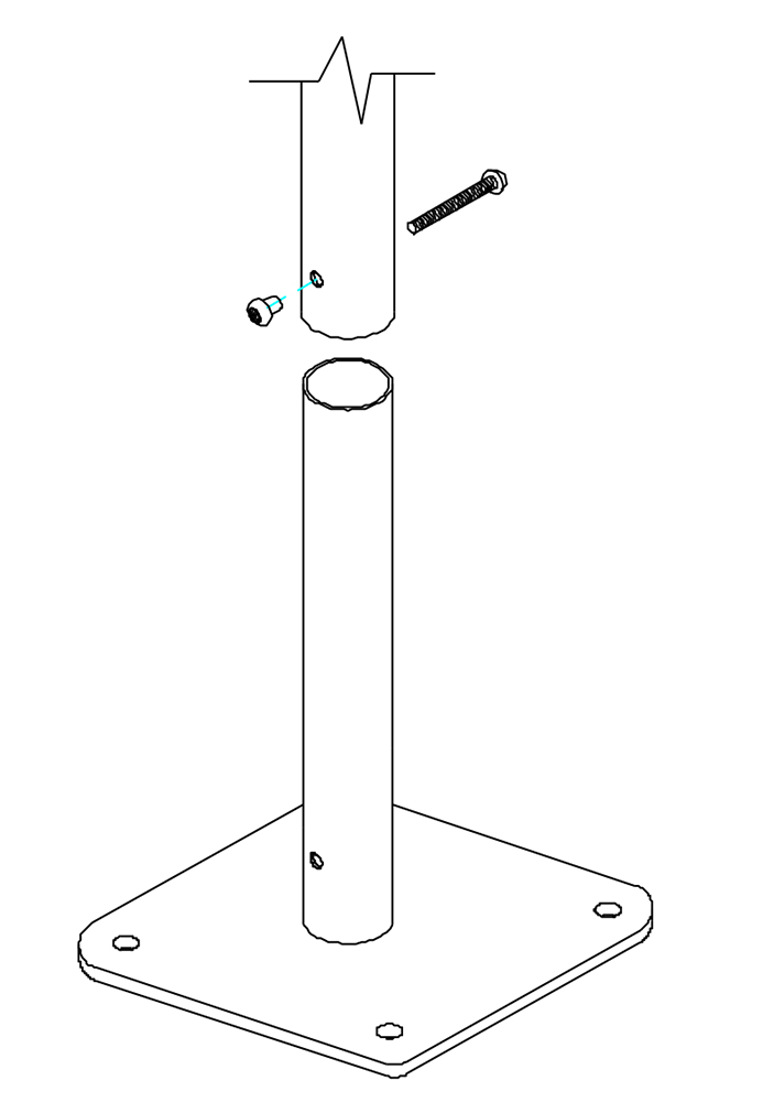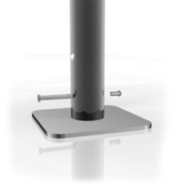 Es gibt sie jeweils alternativ zum Einbetonieren oder auf Anfrage (mit Aufpreis) auch mit Grundplatte für die Flächenbefestigung.