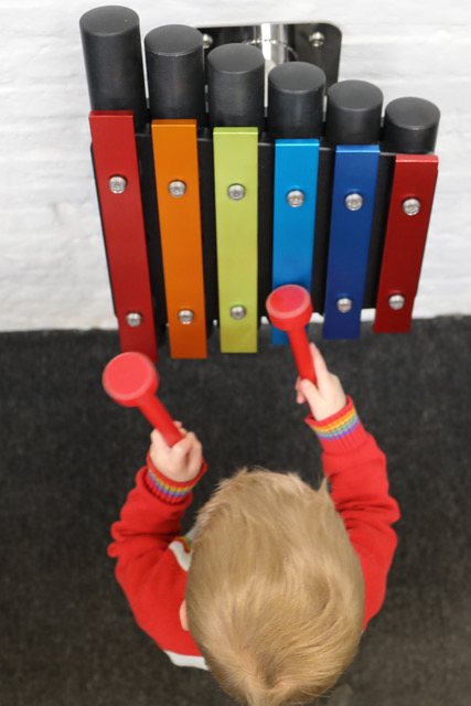 Dieses kleine und kompakte Freiluftnstrument ist ideal, um mit Tönen und Tonhöhen (hoch/tief, laut/leise, schnel /langsam) und anderen musikalischen Kontrasten zu experimentieren.