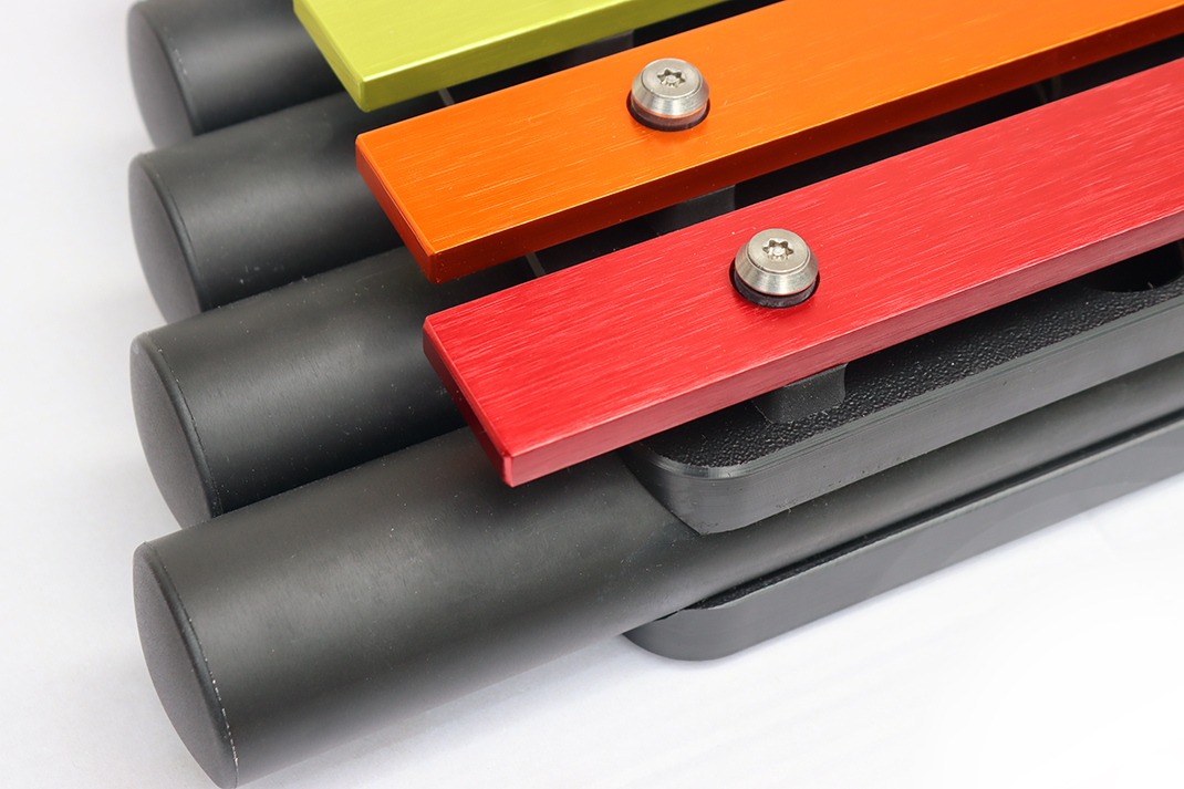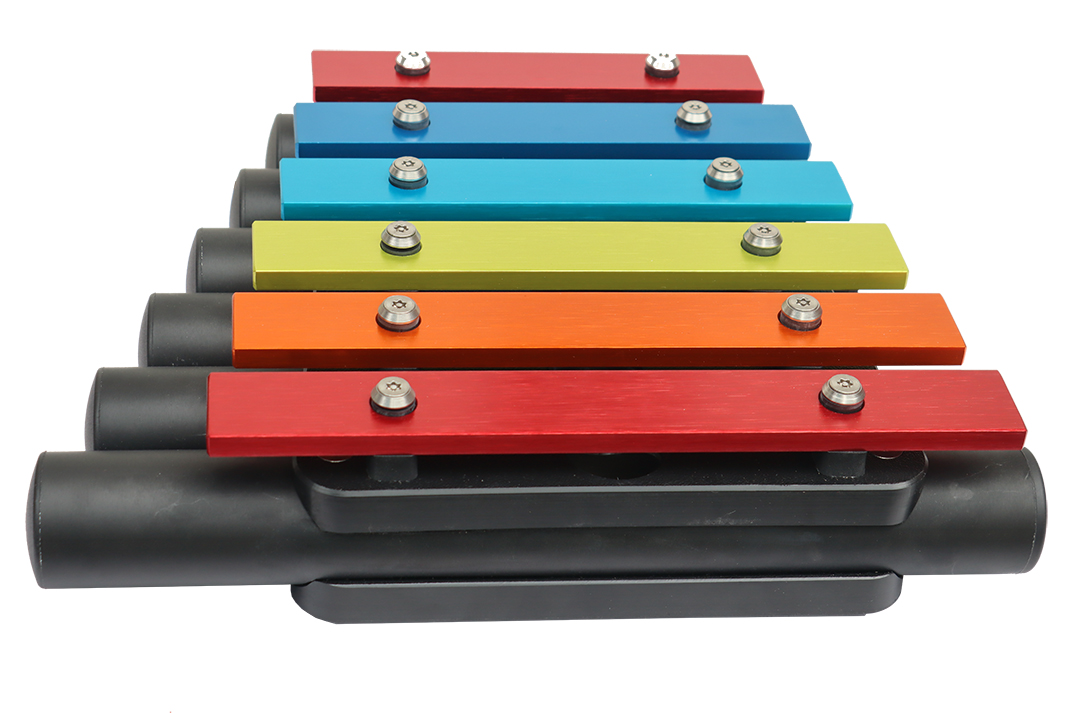 Das kleine Außenklangobjekt Metallofon „Rainbow“ ist ein pentatonisch gestimmtes Instrument.