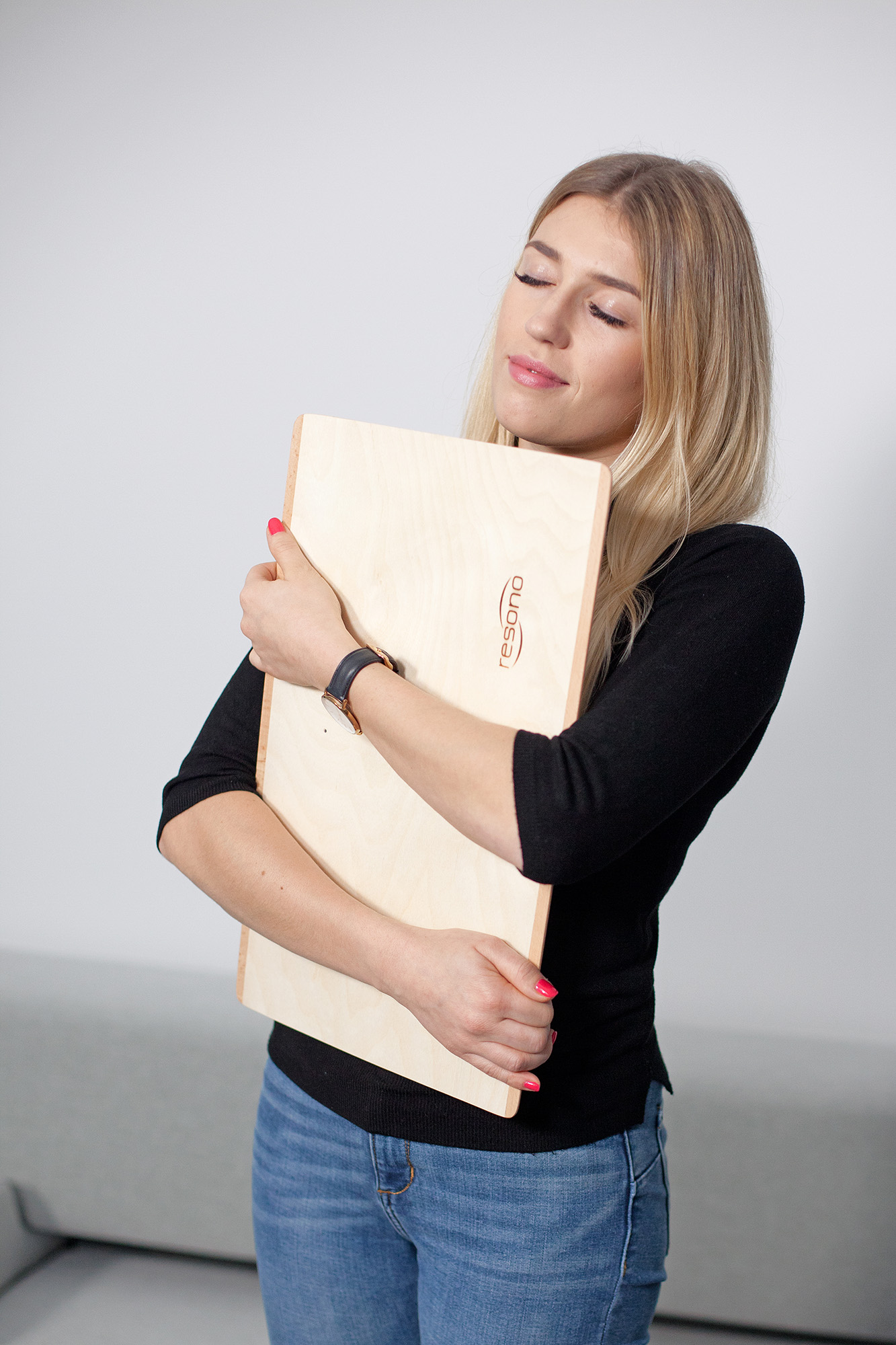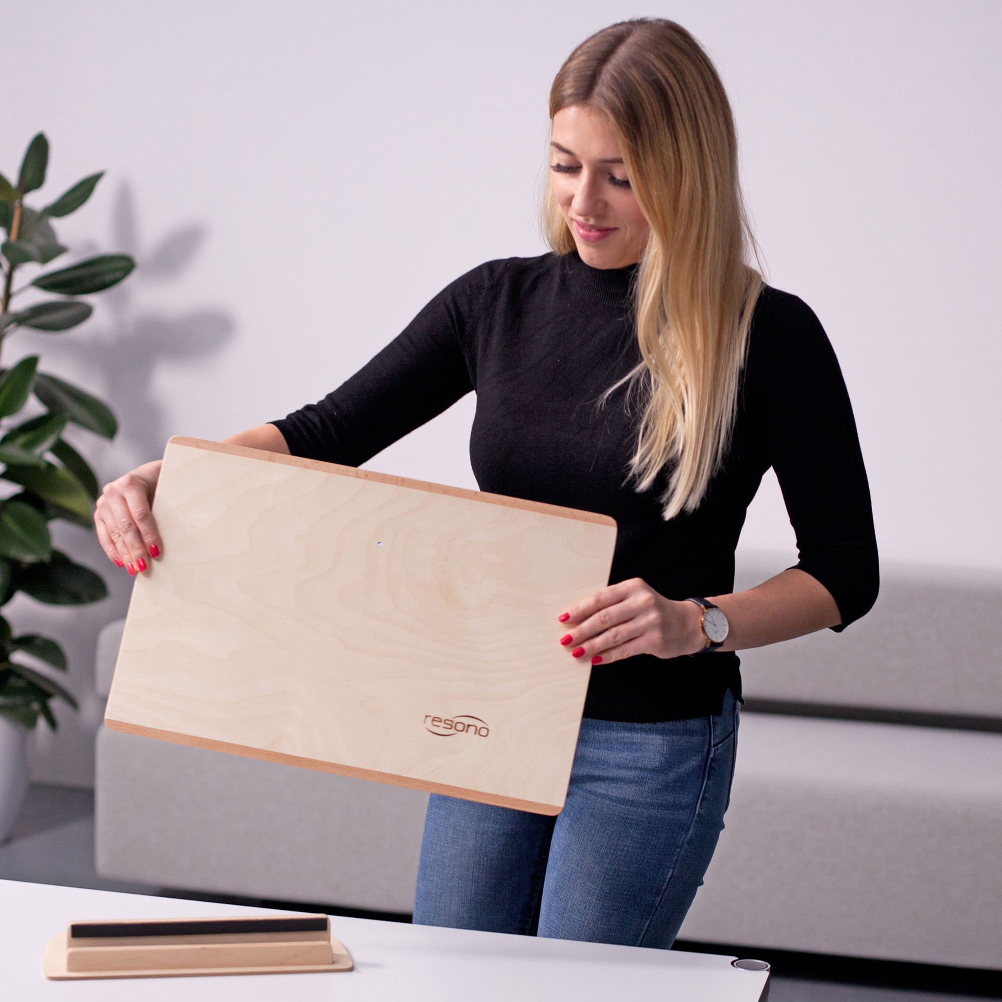 Resono SoundPad Mark II, Holzplatte mit Vibrationsmodulen, 48,5 x 34 x 3 cm