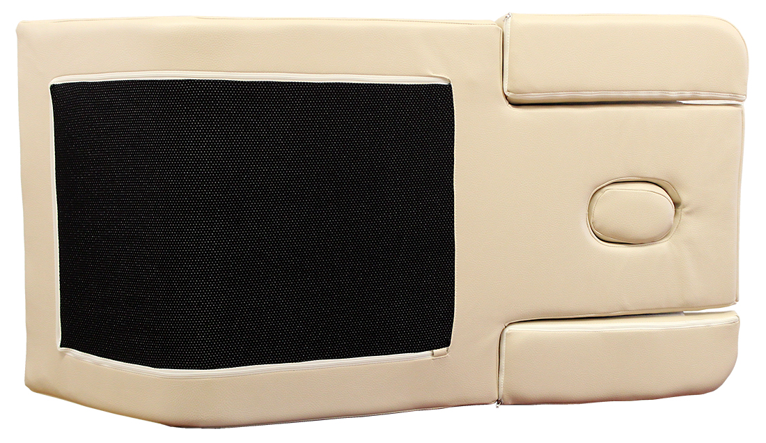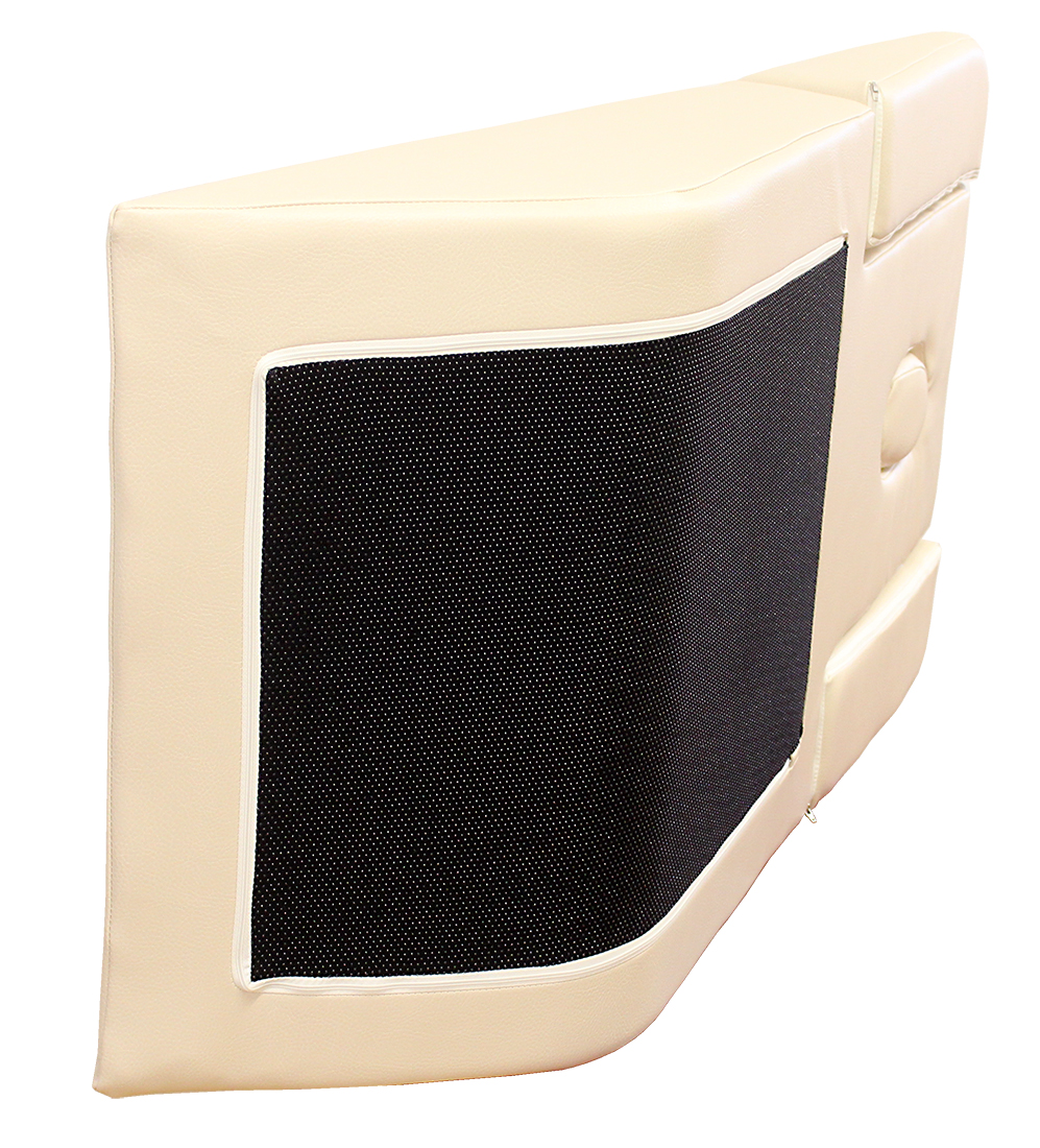 Hartschaumstoff mit Bezug aus desinfektionsmitteltauglichem Kunstleder, abklettbarer Armausschnitt und Nasenloch