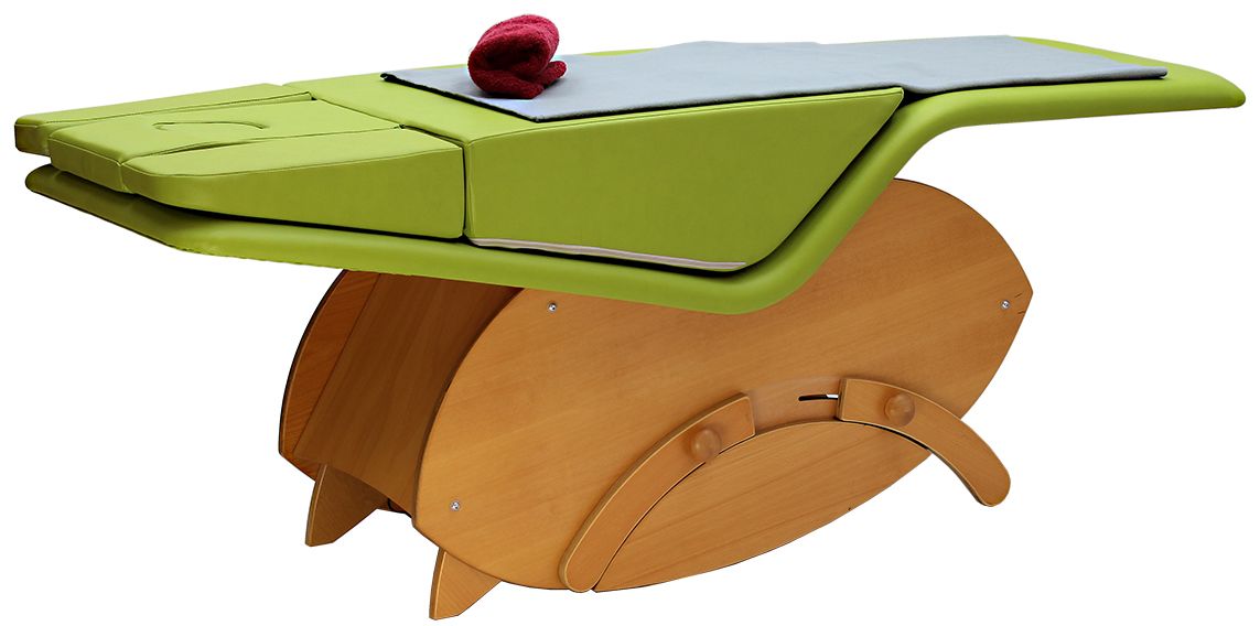 Durch den Schaumstoffkeil, der in fixierter Position auf die Medibalance gelegt wird, läßt sich eine ebene Liegefläche herstellen.