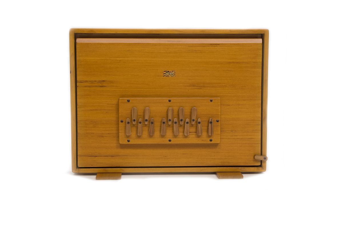 Die Shrutibox „Paloma groß“ ist eine etwas schwerere Box mit ganz besonders ausgewogenem, warmem, vollem Ton und großem Rahmen. Die Bambusoptik, die seidenmatte Lackierung und die sehr feine Verarbeitungsqualität geben dem Instrument einen besonders edlen optischen Charakter.