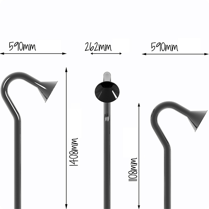 Die Kegel werden komplett mit Anti-Schmutz-Netz geliefert und sind abgewinkelt, um das Eindringen von Wasser zu verhindern. Das Besondere an diesen Flüsterrohren ist, dass sie so gebogen wurden, um den bestmöglichen Klang zu erzielen. Sie wurden viele Male vom ganzen Team getestet, mit verschiedenen Biegungen, Größen und Materialien. Das Rohr, das in den Boden gesteckt wird, ist wirklich robust und stark - kein kleiner Wasserschlauch, der mit der Zeit kaputt geht.