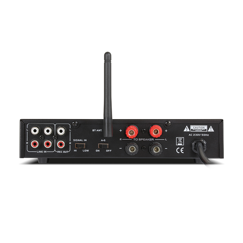Der Dynavox ESA-18 MK BT ist der Nachfolger des über viele Jahre erfolgreichen E-SA18 Stereo-Mini-Verstärkers. Das Gerät besitzt im Vergleich zum Vorgänger u.A. ein komplett überarbeitetes Vollmetallgehäuse mit massiver 4mm Frontplatte, leicht veränderte Maße sowie BT-Empfang. Der Dynavox ESA-18 MK BT besitzt 2 Line- sowie einen Mikrofoneingang. Der Mikrofoneingang ist in der Lautstärke und im Echo regelbar. Schaltbare Loudness, Record Out, getrennte Höhen- und Bassregelung sowie eine abschaltbare Auto-Standby-Regelung (Gerät schaltet nach ca. 15 Minuten ohne Signalausgang selbständig ab) komplettieren die umfangreiche Ausstattung.