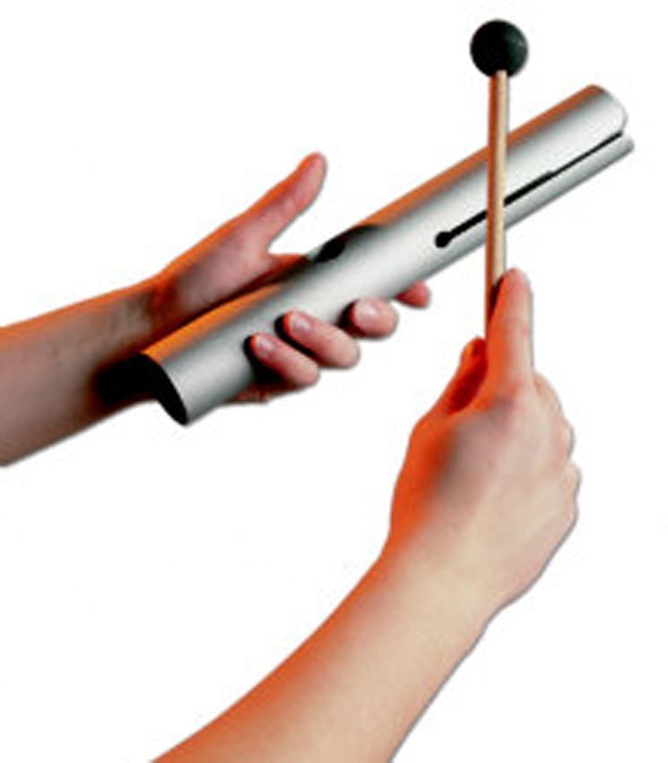 5 Wha-wha-tubes, Aluminium, inkl. 5 Schlägel, D= 2,5 cm, Länge ca. 15-23 cm, Töne f2-g2-a2-c3-d3, Gesamtgewicht 680 gramm